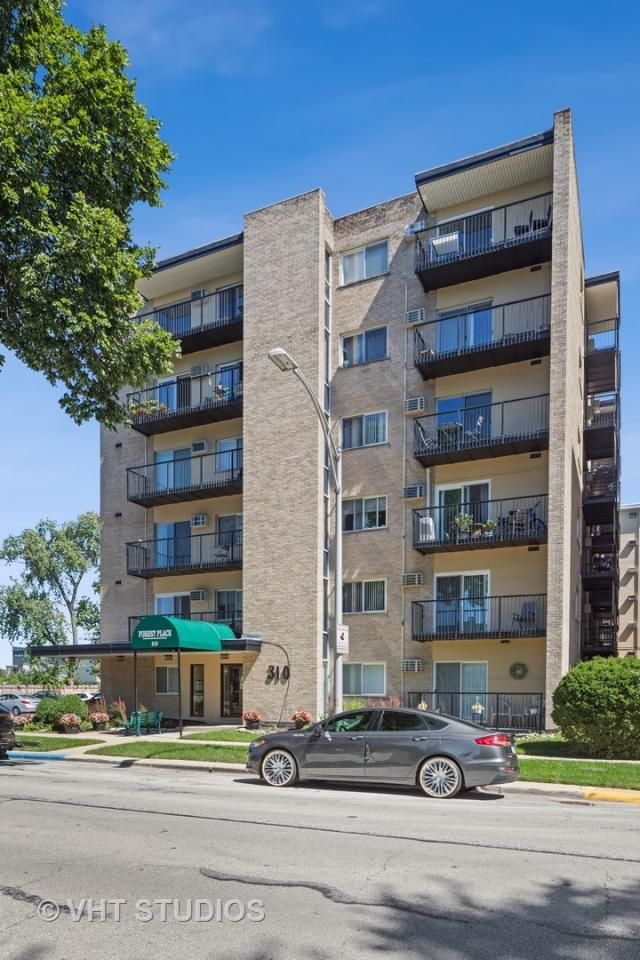 Top floor, east and south facing corner unit with Chicago skyline views! Just WOW! Updated throughout! Freshly painted, newer windows, new floors, modern kitchen and updated bath. Enjoy views of the tree lined neighborhood all the way to the skyline from your own private balcony. Unit #611 has an open feel and amazing natural light pouring in from the east and south facing views. An elevator building with in-building laundry, private storage space, shared bike storage and an assigned deeded outdoor parking space. Bonus, incredibly low tax bill! Fabulous walking location! Close to downtown Oak Park, Oak Park's green line, Forest Park's blue line, Madison Street with shops & restaurants galore!