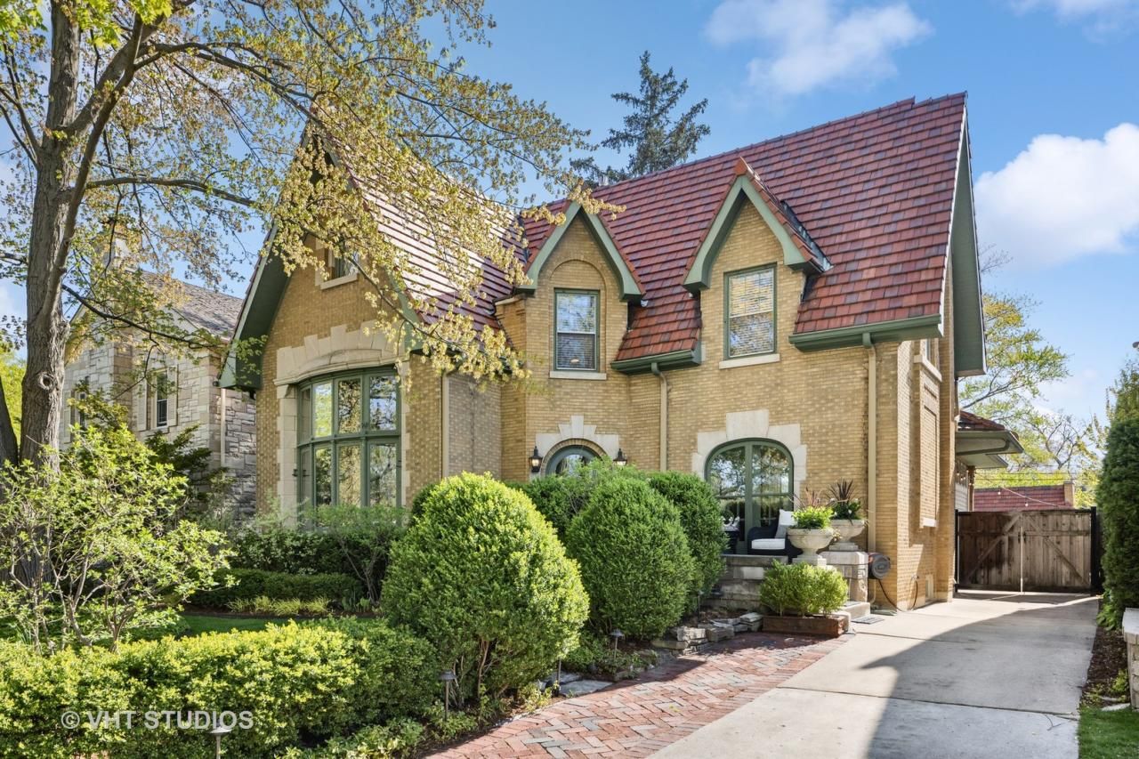 Nestled among mature trees and lush greenery, 1140 welcomes you to linger on the deep front front porch with a book or a friend. After entering the arched doorway into the foyer, so many rich architectural details capture your attention. The original terracotta tiles guide you into the sunken living room that takes your breath away. This brick English Tudor boasts historic millwork, a soaring cathedral ceiling with wooden beams, an impressive carved stone fireplace surround, and a 2-story iron and glass window. Overlooks from the staircase and the northern 2nd floor bedroom just further enhance the charm and character. The 1st floor has a circular flow that includes extras for modern living like an epic mudroom and a pantry closet. The 3rd floor primary suite is fantastic with an endless amount of custom closet space, a fireplace and tree top views. If you want to exercise at home, have a movie night or game night with friends, the finished and dry basement - complete with a full bathroom and kitchenette - offers space for all of that and more. The backyard is the cherry on top! With a brick garage that is accessible from both the alley and the driveway, you have options for guest cars, basketball games and garage projects. The grilling and dining areas sit on the brick paver patio, spill out to the lounge area, continue through the garden and grass area, then lead you back to the secluded fire pit. 1140 has rooms for everyone and outdoor spaces that beckon you to relax and connect. Perfectly located on Kenilworth parkway, steps from Mann Elementary School and Lindberg Park, with easy access to transportation, and downtown Oak Park and Chicago.