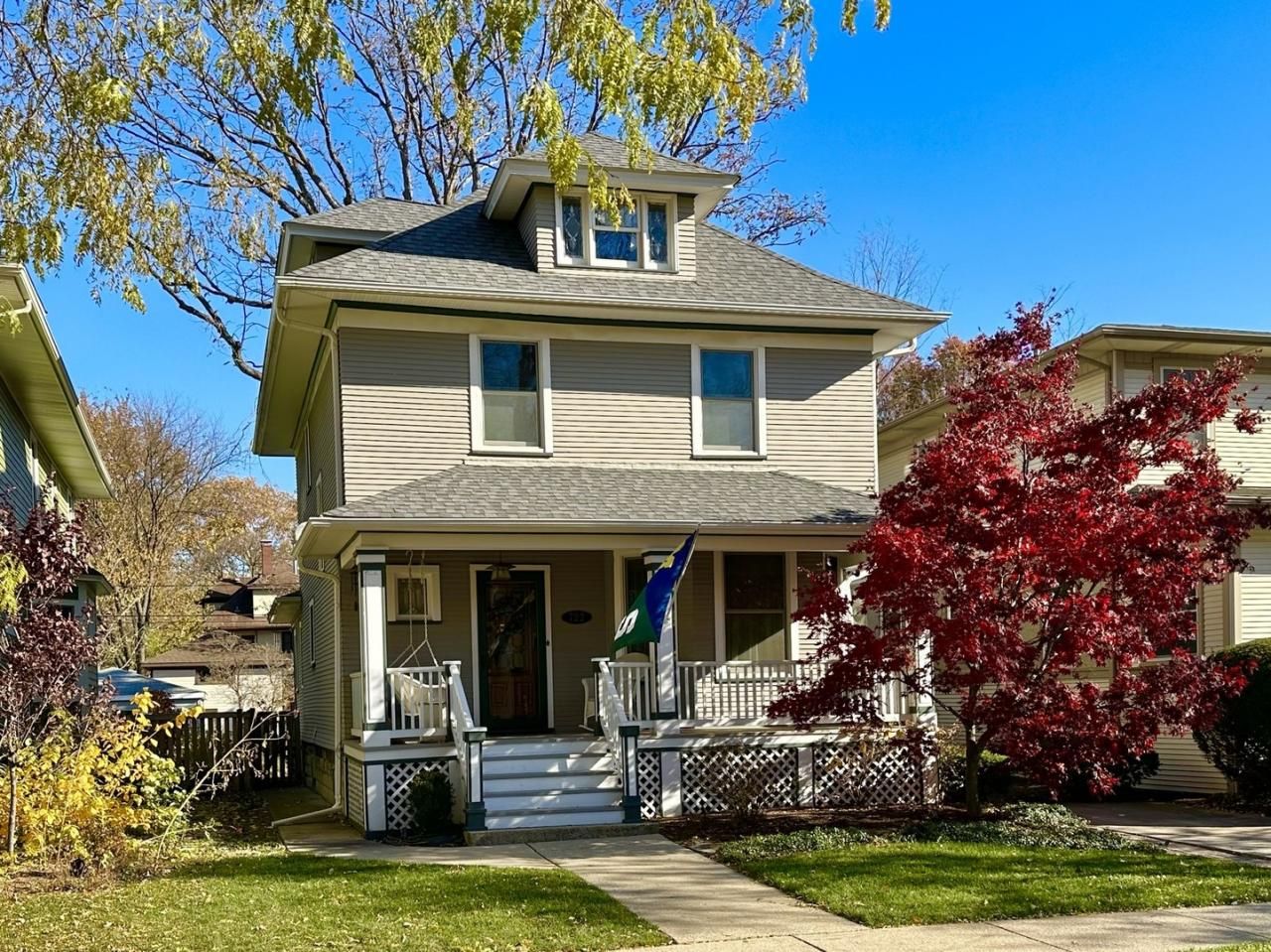 Nestled in the middle of the most fantastic block and easily walkable south to downtown Oak Park and north to several parks and Mann Elementary School. Quintessential Oak Park home that greets you with a welcoming front porch complete with a swing. As you walk through the first floor, the back of the home surprises you with a family room addition boasting 12ft. ceilings, a fireplace and adjoining breakfast room - all leading out to a wrap around deck and a deep, fully fenced backyard. The 2nd floor has 3 bedrooms and 1 full bathroom. The 3rd floor is finished and has an ensuite full bathroom. Above grade square footage, according to the Cook County Assessor, is 2,356. Newer roof, windows and mechanicals. Main furnace and AC were replaced this year. So well maintained and in excellent condition!
