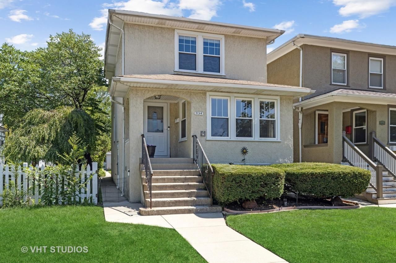 Traditional Oak Park stucco four square home directly across from the multi block Maple Park! Enjoy the sound of children playing & the crack of a bat hitting the ball! You can walk across the street to fly a kite, go swing at the playground or let your 4-legged pal chase a ball in the gated dog area. What a great place to meet your neighbors & make life long friends! Inside 1154, you will enjoy the newer windows throughout & the central air is a big winner! Hardwood floors throughout, including under the bedroom carpet! Looking to home office or expand the kitchen? The existing 1st floor office can be left as is or you can claim that space for your new open concept kitchen! New stainless steel side by side fridge & gas range/oven are waiting for you! The kitchen is big enough to accommodate a table + chairs or more shelving. Walk out the kitchen door onto a deck big enough for summer dining & grilling. Then continue into the deep back yard! Bonus! There is a shed next to the garage for all the extras! Basement is partially finished, has a full sized freezer & 2 bar refrigerators that are included, a wet bar & full bathroom. There is an open hang out space too. Taxes are $0 with a disabled veteran's exemption that will reset on the purchase price. 1154 goes to these fantastic schools: Lincoln Elementary, Brooks Middle School & OPRF High School. Great location! Easy access to 290, downtown Oak Park, Madison Street in Forest Park & all the fun entertainment venues & restaurants on Roosevelt in Berwyn. Quick close is possible! Move in ready!