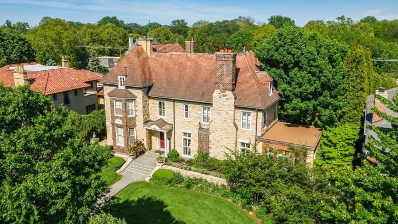An architecturally stunning French country chateau (ca.1928) situated on a massive 100'x184' lot with mature landscaping in the heart of River Forest's Estate District. Featuring Lannon stone, wood molded brick and a clay tile roof, this beauty has been restored and maintained like no other. Boasting hardwood throughout; the main level features a herringbone pattern in the Reception Foyer, Family Room, Breakfast Room and Dining Room. A massive sunken Living Room featuring French windows, twin two tiered Shoenbeck crystal chandeliers and a gas log fireplace flows to a sunken Sun Parlor that sits at the southern section of the floor plan, boasting a marble floor, 14' ceilings, French Doors, French windows and incredibly detailed plaster carved moldings. The Dining Room features a pair of illuminated display cabinets, a decorative fireplace and French Doors leading directly to the veranda looking out on the private backyard. The veranda is an open, but protected, arched outdoor room w Lannon stone flooring. The Main level Family Room sits opposite the Living Room and also features a decorative fireplace with hand carved plaster details. A Mark Menna designed kitchen features custom solid cherry cabinetry, heated flooring, a Wolf range, Kitchen Aid refrigerator, wine fridge and a cozy gas log fireplace. An Oval shaped Breakfast Room sits adjacent and also offers access to the veranda. A sweeping staircase leads to the second level; a landing features French Doors that open onto an eastern facing second floor deck space that overlooks the yard. A large sitting area on the second level splits the Primary wing from the other two Bedrooms on this level. An absolutely massive Primary Suite features a foyer, a walk in closet, Mark Menna bath with double vanities, heated limestone floor, and two more tandem rooms, currently used as a his and hers office. This could work easily as a nursery with home office as well. Bedroom II is also an en-suite featuring an updated bath and is currently carpeted but has an original hardwood floor. Bedroom III sits adjacent a petite bath with tub. A back staircase leads down to the kitchen as well as to the 3rd floor which boasts 2 more Bedrooms (IV & V) and a shared hallway bath, this sits on the northern section of the floor plan. There is expansive attic space that is a raw option simply to use as storage or else add even more finished square footage to this foot print. The basement features a Polyurea resurfaced floor, high ceilings, a master craftsman's wood working room, laundry, multiple storage closets, and walks out to the rear drive via a cellar door. Mature landscaping surrounds this home, the backyard features 110 towering Wintergreen Arborvitae that line the perimeter and provide utmost privacy. Gather round the flagstone gas log fire pit and enjoy this serene setting inside a formal garden lined with Boxwoods and accented with ornamental trees and perennial plantings.