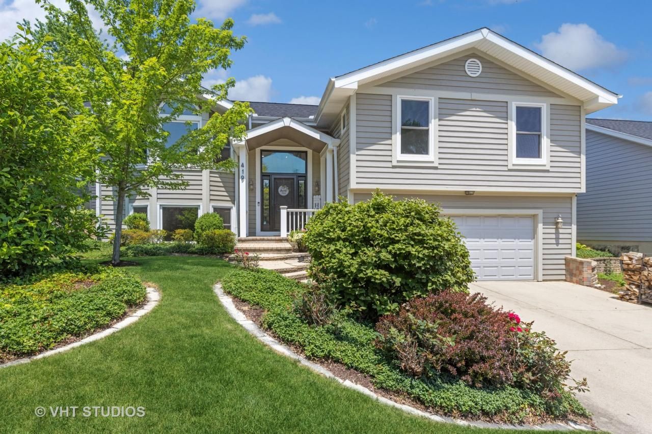Welcome to this stunning five-bedroom home, located in beautiful North Wheaton. Nestled in a quiet culdesac, this property is just steps away from Wheaton North High School and the Northside park, which boasts an array of recreational facilities, including the public pool. Enjoy a serene setting with no traffic while still being close to all that the community has to offer. The first thing you'll notice about this home is the impressive high ceilings with skylights in the updated kitchen that allow natural light to pour into the space. The expansive open concept layout leads to a living room with gas fireplace and dining area with beautiful new hardwood floors, which extend throughout the main floor! The favorite gathering spot is sure to be around the huge kitchen island, which includes cabinet space on all sides. The main floor features three bedrooms and an office/4th bedroom--including the primary bedroom with its own high ceilings and master bath with skylights. The owners of this home have gone above and beyond in maintaining and updating the property, including recently replacing all the windows, front and back doors, sliding door, and roof. The attention to detail is evident everywhere you look, from the replaced gutters with gutter guards to the newly installed composite deck overlooking the professionally landscaped fenced yard. The lower level boasts 9' ceilings, large windows, a recreational space with a cozy fireplace, and a built-in entertainment center. There is also a generously-sized bedroom with two closets and a full bath, making this area a perfect in-law suite or guest retreat. If desired, the lower level is plumbed for a kitchen, adding to the versatility of the space. Additional features of this home include an in-ground sprinkler system and the extra deep 2.5 car garage. Located on a hill, there is no need for a sump pump, and the lower level stays dry even during heavy rainfalls. Don't miss the opportunity to make this meticulously maintained and thoughtfully updated home your own.